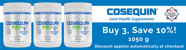 This chart should be used for guidance. Initial administration period is 2 - 4 weeks at 1 - 2 scoops per day depending on weight, or as recommended by your veterinarian. For horses over 1200 lbs, administration may be increased. Cosequin ASU PLUS can be administered either at 1 feeding, or divided between feedings. Once response is noted, the number of scoops can gradually be reduced to a level that best maintains your horse. Prior to and during an event or strenuous exercise, administration may be increased back to the initial level for extra support.